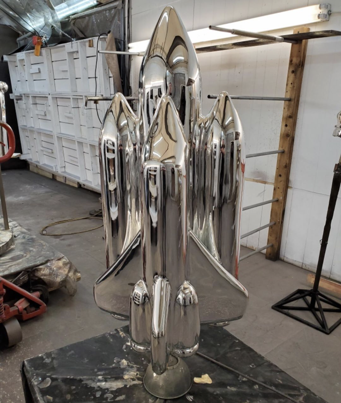 Sculpted chromed shuttle for floor display for Macy’s INC in Herald Square, NYC.